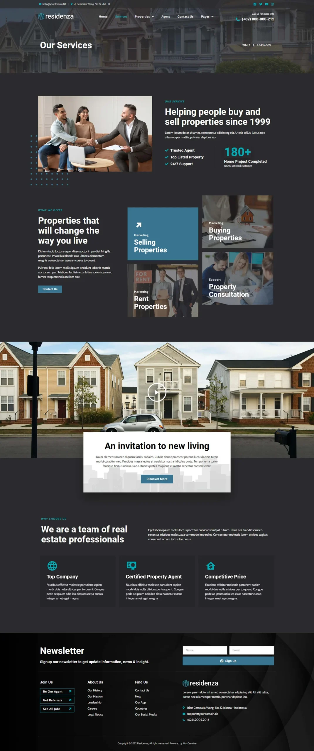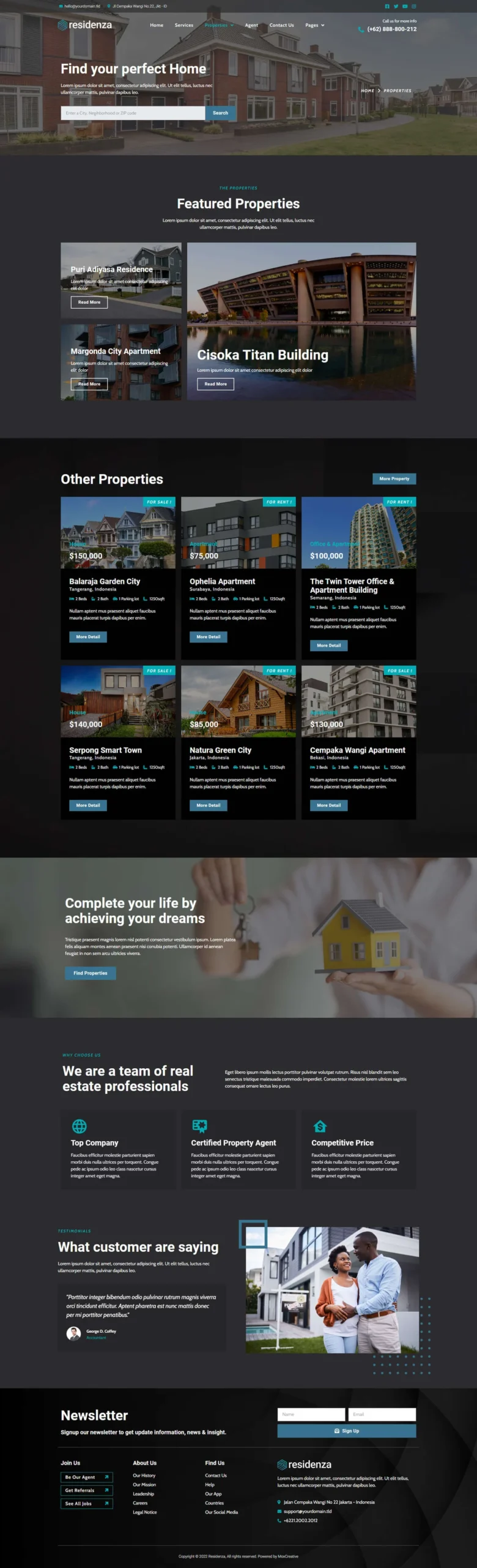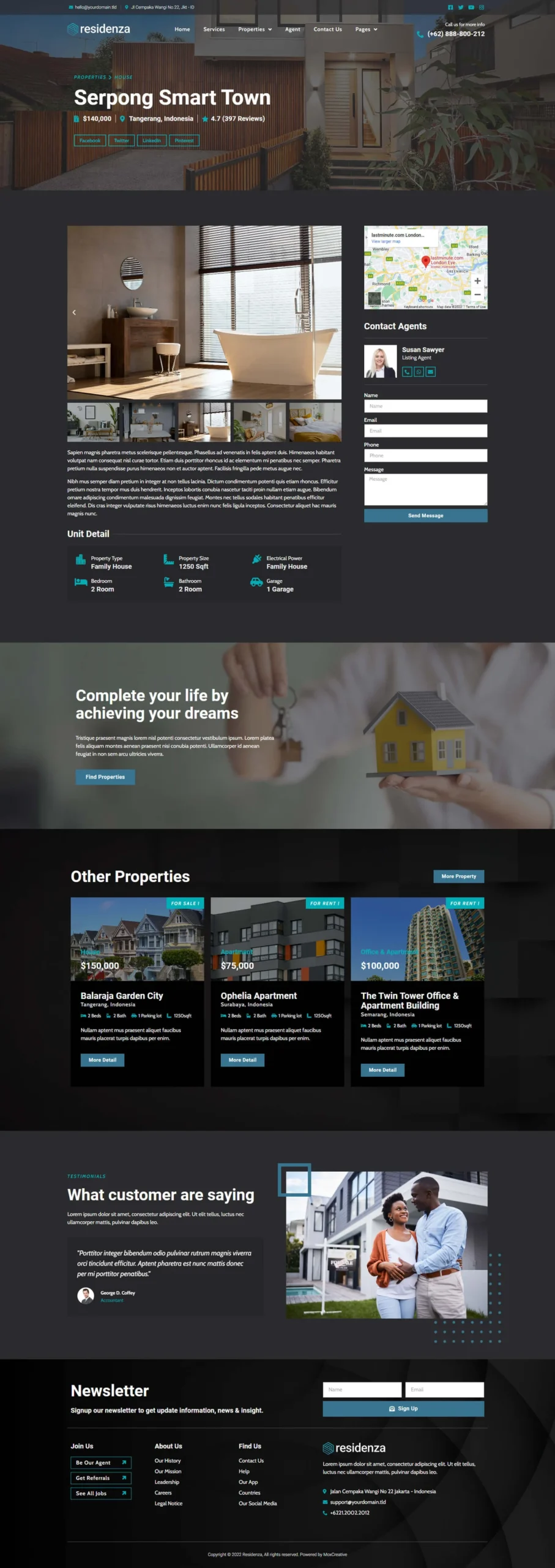 Pre klientov pripravujeme predpripravený dizajn, ktorý už zahŕňa všetky bežné moduly potrebné pre realitnú stránku. Tento náš dizajn môže byť použitý ako vyštartovacia šablóna špeciálne pre vás, s možnosťou úprav podľa vašich predstáv — farby, rozloženie, identita značky. Funkcie zahŕňajú: