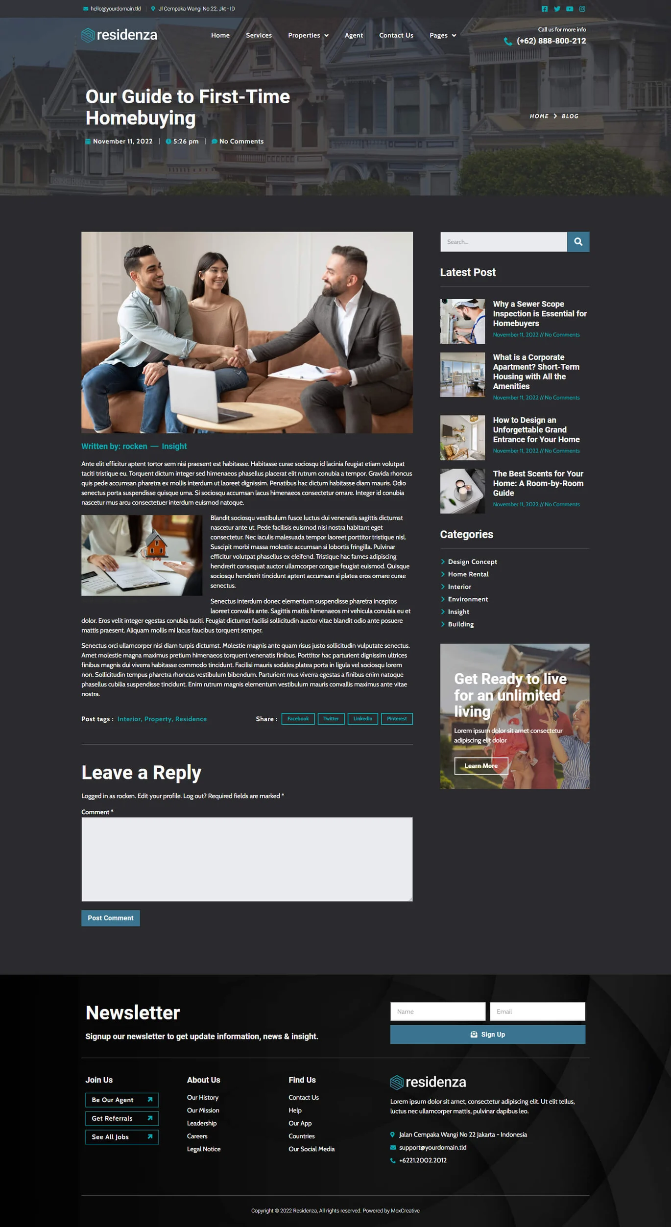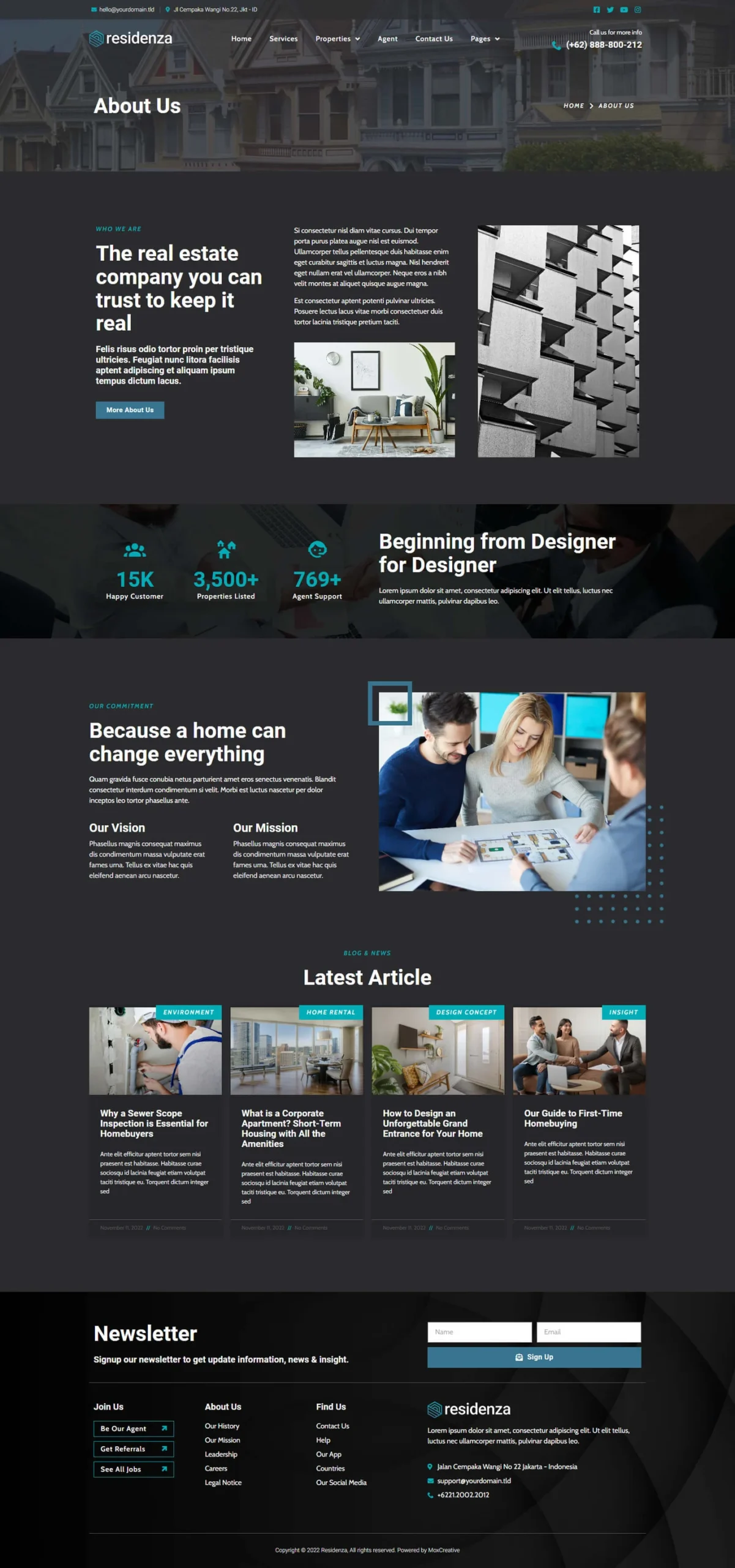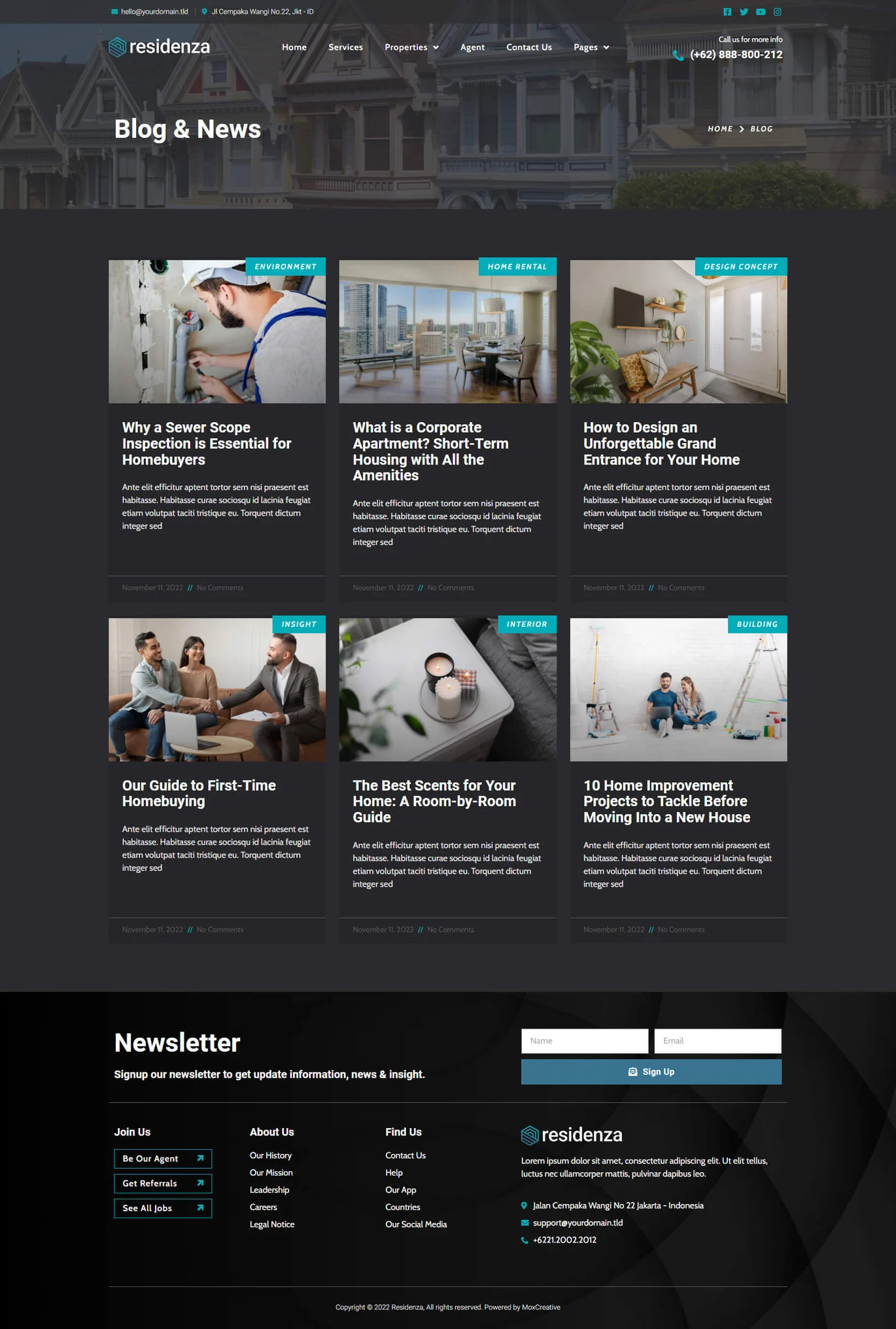 Pre klientov pripravujeme predpripravený dizajn, ktorý už zahŕňa všetky bežné moduly potrebné pre realitnú stránku. Tento náš dizajn môže byť použitý ako vyštartovacia šablóna špeciálne pre vás, s možnosťou úprav podľa vašich predstáv — farby, rozloženie, identita značky. Funkcie zahŕňajú: