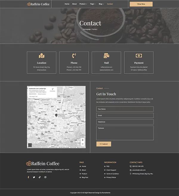 Optimalizované SEO značky a štruktúra pre kľúčové slová web pre kaviareň, web pre obchod s kávou
